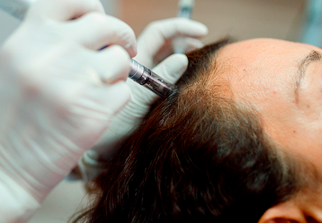 Técnica que utiliza microagulhas para infundir medicamentos diretamente no couro cabeludo, estimulando o crescimento capilar e fortalecendo os fios.